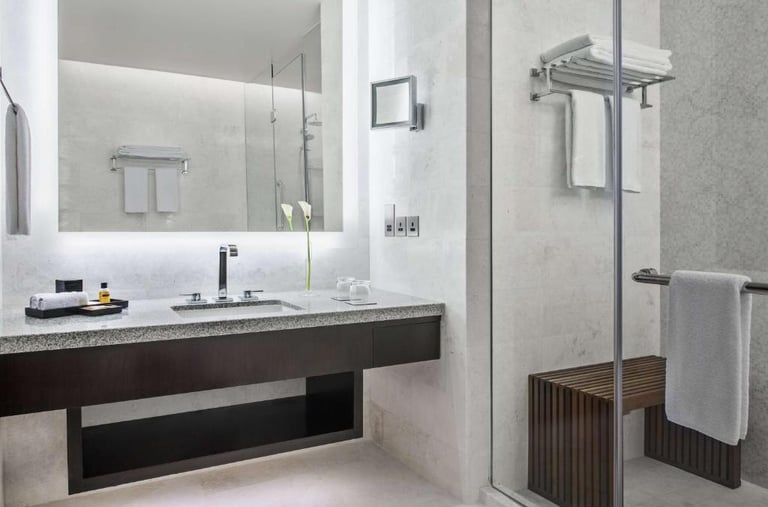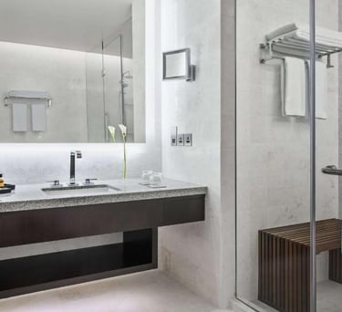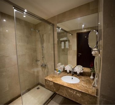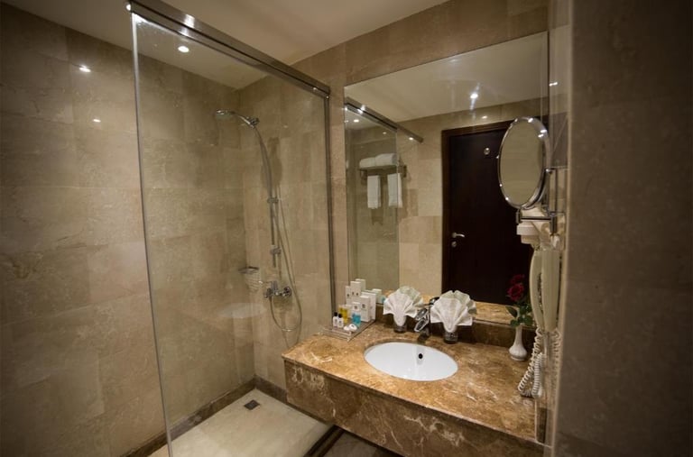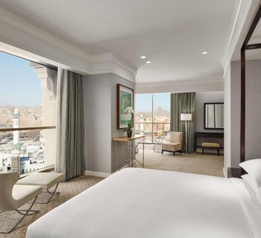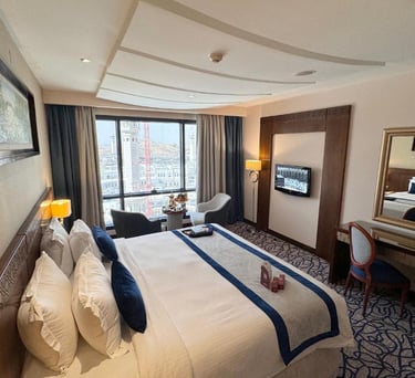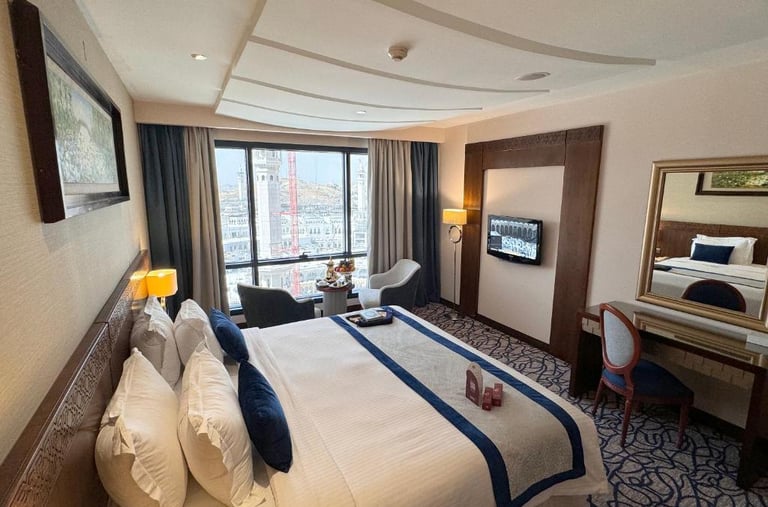 Découvrez notre chambre luxe, équipée de toutes les commodités modernes, pour un séjour inoubliable idéale pour les voyageurs en quête de confort après leur Omra.